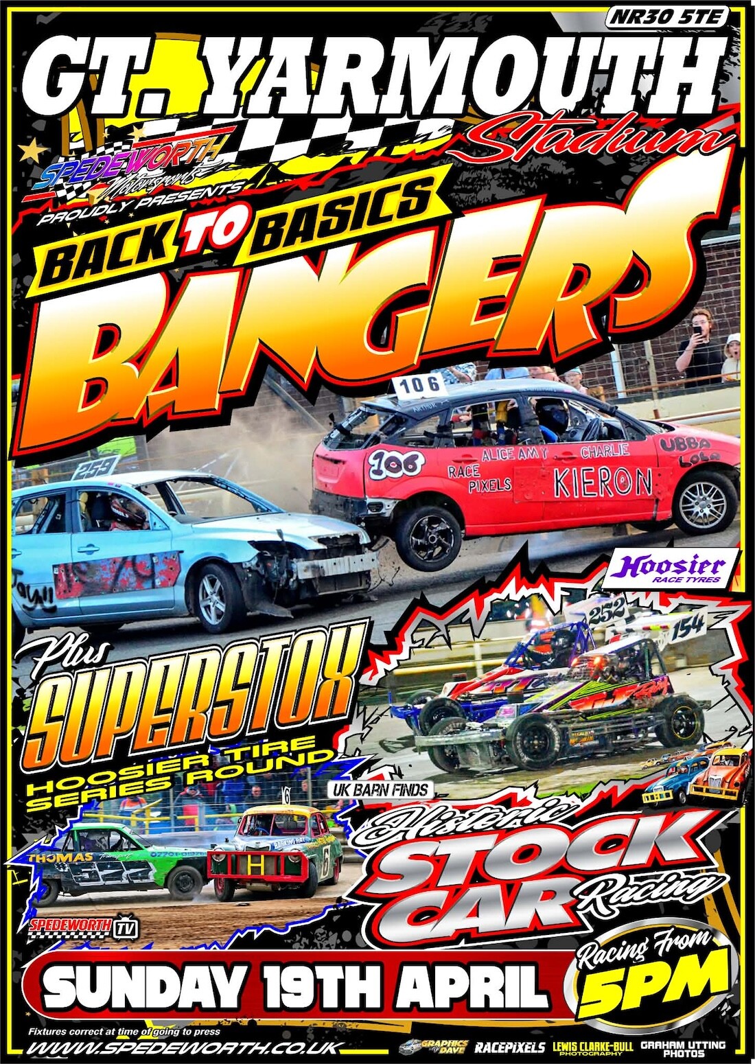 Banger & Stock Car racing is pay on the turnstiles, these open one hour before the first race.